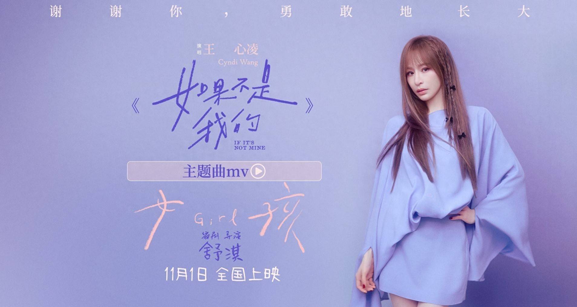 电影《女孩》由舒淇编剧并执导,邱泽、汤毓绮(9m88)、白小樱、林品彤主演,即将于11月1日全国上映。影片今日释出由甜蜜天后王心凌倾情献唱主题曲《如果不是我的》MV,与“男人与女人”版海报。导演舒淇以影像和世界说话,王心凌以最细腻的歌声当作回应,在理解与释怀之间,她们共同写下属于这个时代的温柔告白。《女孩》11月1日即将治愈上映,送给一路上努力美好的女孩们。