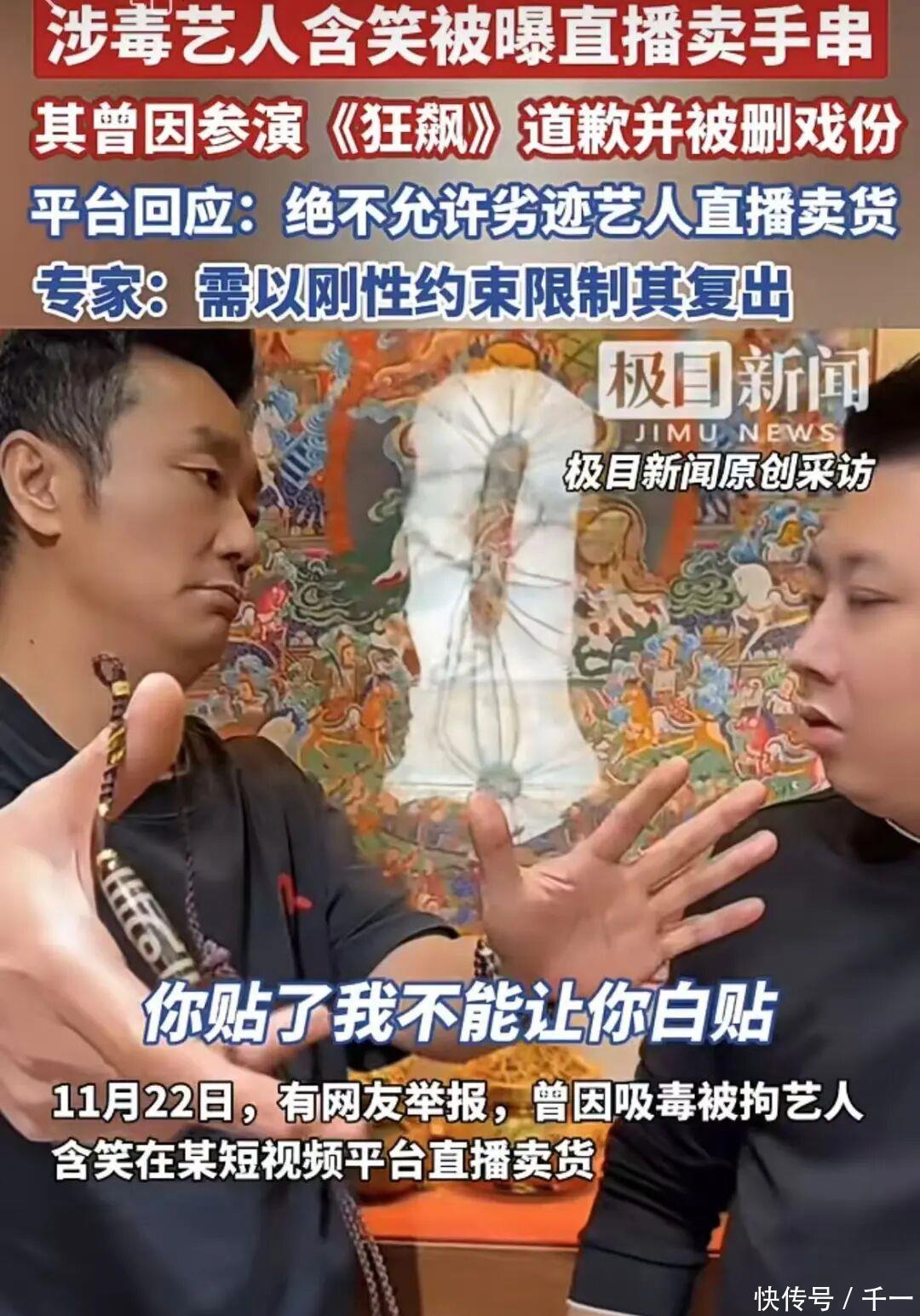 财经摆渡人破浪前行,共探财富新局大家好欢迎收看【古今财鉴】11月的直播圈突然热闹起来,起因是个熟面孔含笑。这位多年前因吸毒被抓的艺人,悄无声息出现在直播间卖手串,结果没播半小时就被网友举报,平台紧急掐断了直播。