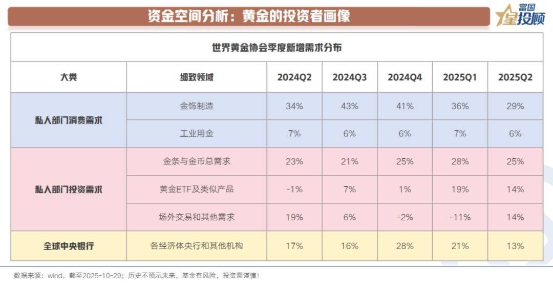 从世界黄金协会公布的数据来看,黄金的需求者基本可以分成三类:私人部门消费需求、私人部门投资需求、全球央行购金需求。其中,