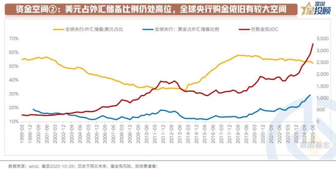 3)资金空间②:美元占外汇储备比例仍处高位,全球央行购金依旧有较大空间